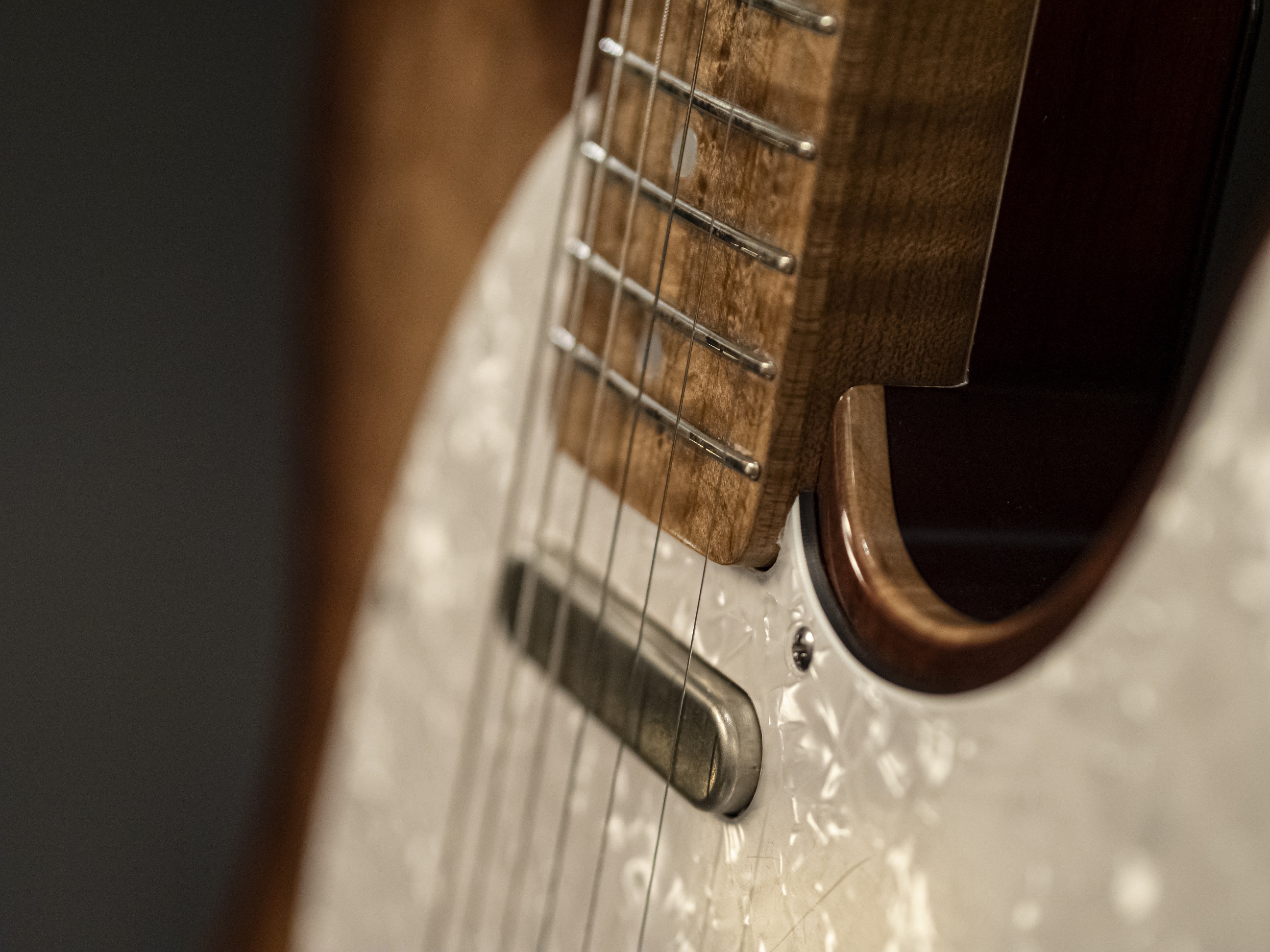 Mástil de arce birdseye con diapasón de arce birdseye.